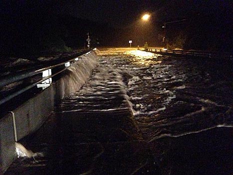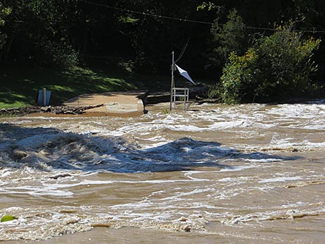 New from the Monkeynut, October, 2013 - Halloween. On the heels of the big storm that trashed ACL, we had another doozy the night before Halloween. This one dumped about 4 inches on us, but a foot fell to the west, in the hill country. As a result, the rivers rose and we had some spectacular flooding. Here are some pictures pilfered from the internet.