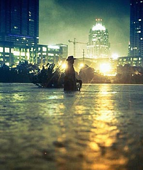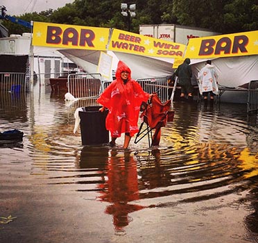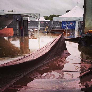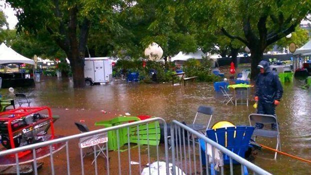 New from the Monkeynut, October, 2013 - ACL Fest. This year, ACL expanded from one three-day zoo to two three-day zoos, on two adjacent weekends. The line-ups were roughly the same each weekend, so the idea was to allow more people to attend without further increasing the crowding in the park. After being disappointed by the festival last year, I decided not go; Louise who had a better time than I last year was a little more conflicted, but in the end did not buy a ticket. The first weekend was gorgeous and I know that Louise regretted not being there. The second ... not so much. We had actually decided to go to the symphony Saturday night, without thinking too carefully about the fact that many ACL-goers would be parking in the Long Center lot with us. But we decided to park early, before leaving for dinner at a nearby restaurant, so we were able to get a parking spot, albeit on a more remote floor of the parking garage than usual. BUT, when the concert was over and we headed back to the parking garage, we discovered that it was raining and the streets were thick with fleeing ACL-goers. (Gotta say, though, that they all looked quite happy.) But the traffic was awful and it took us close to an hour to get home. It then continued to rain hard all night, accompanied by amazing flashes and crashes. When we woke up after a troubled night's sleep, we found that a foot of rain had fallen in the vicinity of our house, our roof had sprung a leak, and that the final day of ACL had been cancelled. Here are some pics explaining why.