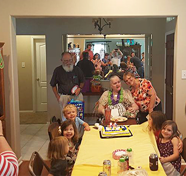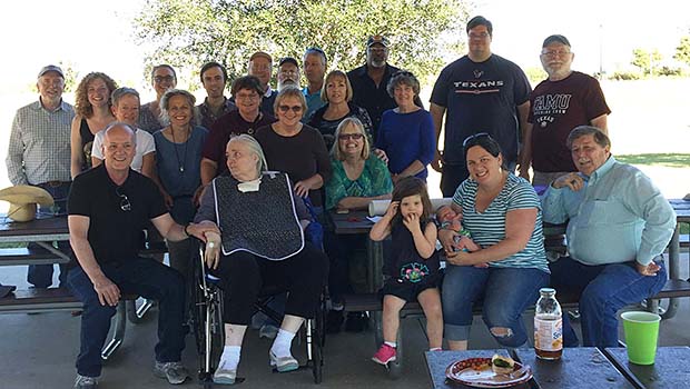 Next, off to Missouri City, about an hour away, for Margaret's party. Most of the Texas Lynches were there, hosted by Larry and Joan and featuring some fine barbeque. Larry took the picture below, showing Margaret, Roger and Joan; the kids; and all the onlookers in the mirror behind Margaret.