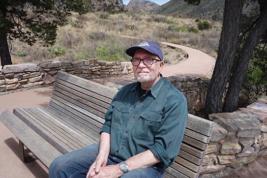 Peter on the window view trail (Note well-tended level paved surface for the infirm) |
