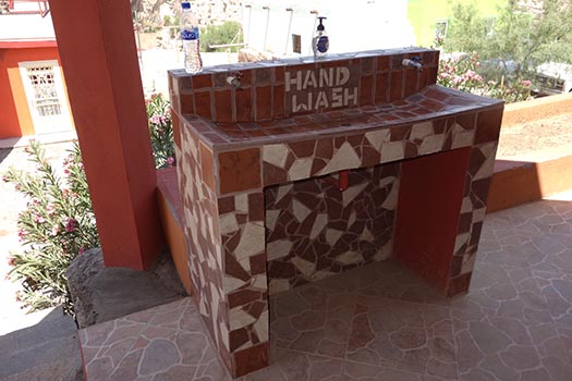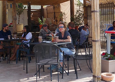 | Our spot for breakfast, La Posada Milagro. Service was slow but everyone seemed to be in a good mood, including the bikers who ate there. |