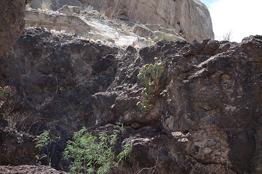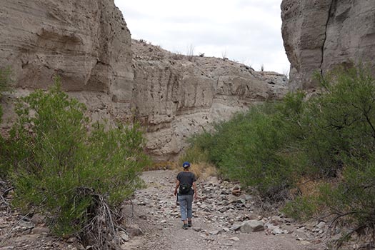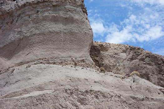 We stopped off for a little hike at Tuff Canyon. Not that tuff of a hike, but made of volcanic tuff, which is the ash from volcanic eruptions. We walked down to the canyon floor and then down it for a ways. The rock formations were fascinating. |