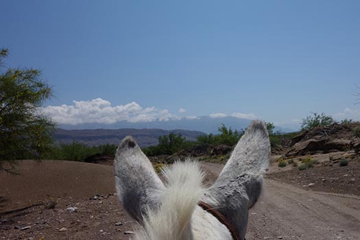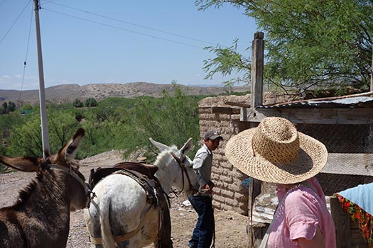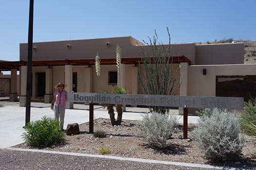 On Sunday, we drove down to the southeast corner of the park. The Chisos mountains were completely obscured by clouds, although it was mostly fine where we were. At the end of the road was a small ranger station where the ranger pointed out the way to the border crossing. There were all kinds of high iron gates and fences with padlocks, although I believe that we could have walked fity yards in either direction and been able to walk down to the river unmolested. However, we entered the Boquillas Port of entry where the TSA guys gave us the story - go through this little open gate, walk down to the river and look on the other shore for a guy singing. Near him will be a rowboat. Wave at the singing man and someone will row across to get you. After that, you have to go to the village of Boquillas and check in with Mexican immigration. Have fun in town, but make sure you get on back across the river by 4:30 because we close at 5. |