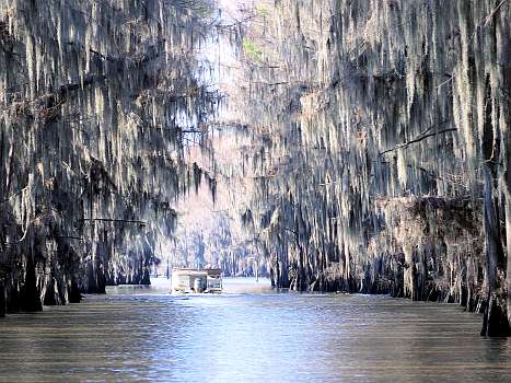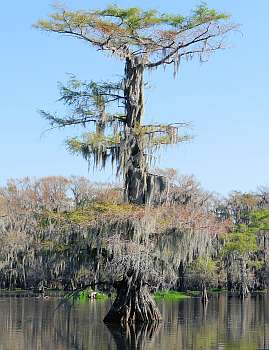 So now the lake is no longer a hub of commerce but a place for relaxation. Part of the charm of the lake is that it is full of bald cypresses. These are picturesque trees that grow only in water. They are deciduous conifers, an unusual combination, and the ones in and around the lake are covered with Spanish moss, giving them an other-worldly charm. They also are home for a great variety of birds, and they are the state tree of Louisiana.