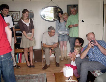The day of September 18th started out spectacularly in Reading, where I was staying with Tom and his family – warm and sunny. We planned to drive up to Leicester in the morning, pick up Dennis who was taking the train from London, and head for Russell and Pauline’s, where we would rendezvous with the rest of the family around noon. We were all worried about Russell’s health and thought that a relatively brief celebration was in order, so as not to stress out the birthday boy.