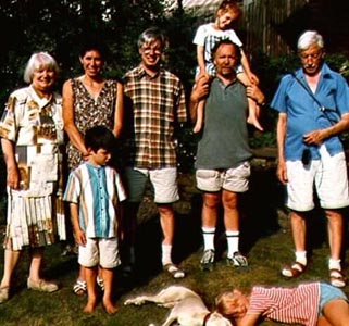 My employment ended at the end of July and so on August 4th, everyone piled into the car for Kennedy Airport. Our flight left in the evening and landed early in the morning of the 5th. We rented a car - a brand new Fiat Marea, of all things, which I expected to start falling apart any moment but which actually seemed to be a well-designed modern medium-sized car that performed flawlessly for us - and drove to Pinner. We stayed at a lovely old hotel about 2 miles from Dad's flat, complete with nicely landscaped garden. After we got checked in on Tuesday, Louise and I were pretty well tuckered out and so decided to take a nap. The girls, on the other hand, decided that they'd rather explore. Just as we were falling asleep, the phone rang and a lovely English voice informed us that one of our daughters had just fallen in the fishpond and was rather wet. An inauspicious start, but no real harm done, other than to Madeline's pride.