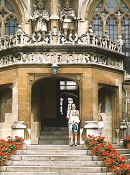 On Wednesday the 6th, we all piled into the Fiat with Dad and drove off to Oxford for the day. One miscalculation on our part became apparent - I had lectured everyone rather patronizingly about how cold and wet an English summer can be and so we were all fortified with long-sleeved shirts and sweaters. In fact, the temperatures were mostly in the 80ies or above the entire time we were abroad and so we were forced to wear our one hot weather uniform over and over again. The trip was great, however. We showed the girls where their father and grandfather had toiled - and also where Dad and Grace did a recent stint.