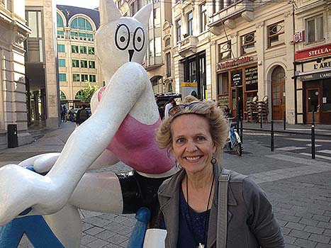 It turns out that Belgium's three proudest achievements are: Belgian chocolate, Belgian beer and Belgian comics. The chocolate was everywhere and we availed ourselves of it more or less continuously during our stay. Neither of us is that fond of the perfumy taste of Belgian beer, although we did visit the Beer Museum. We also visited the comic museum, which is housed in a wonderful art nouveau building which was actually earlier used in the production of comics. The most famous Belgian comic book character was created by Herge: Tintin and his wonder dog, Snowy (Milou in the French version). It turned out that a comic that I used read in my teens, Spirou, was also a Belgian creation. This sent me into a frenzy of joy, rushing from exhibit to exhibit, reliving my teen-age years. Spirou, by the way, created a town peopled by the Schtroumpfs - small, blue creatures that you may know as Smurfs.