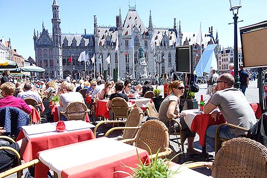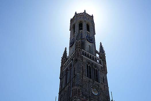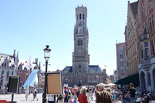 On June 5, we drove to Bruges. Like Brussels, it was not car-friendly and we abandoned our car for the duration of our stay. But Bruges is much smaller than Brussels, so we could easily walk to all the sights. The main square was only a few minutes walk from our hotel and featured lots of eating establishments, various museums, chocolate shops and tons of mediaeval buildings. It was also very crowded all the time. The most celebrated sight was the bell tower, featured in the movie In Bruges, starring Colin Farrell, Ralph Fiennes and Brendan Gleeson, which included the unforgettable line "Shoot first, sightsee later". Louise wanted to hike up the stairs to the top of the bell tower (I did not), but was told that you had to purchase tickets way in advance.