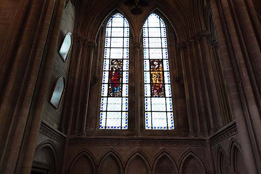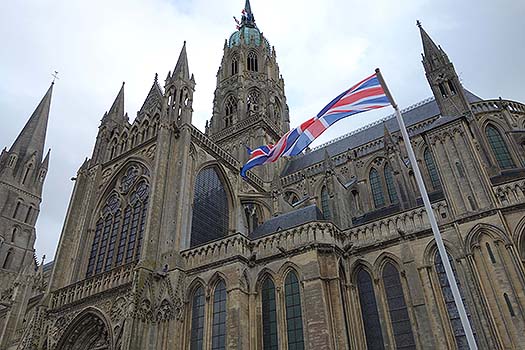 As well as the tapestry, Bayeux has a very fine cathedral, which was just across from our hotel and which we visited first thing the next day. I have no idea why a relatively small town like Bayeux should merit such a wonderful building. They have hitched their wagon to the tapestry, which they remove from the museum each year for a short time in order to display it in the church. I guess they are making clear that it was God's will that the Normans should invade England and civilize the inhabitants.