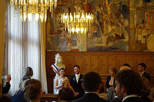 The next day, we left early for Lille, arriving at the town hall about 11:30. In France, marriage is defined by a civil ceremony - a religious service doesn't count. Before the assembled multitude, the mayor read a list of the statutes that must be obeyed and Anne-Sophie and Thibaut agreed. Case closed.