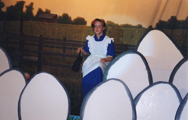 ![]() Ida sitting on her eggs in the first act, down on the farm |