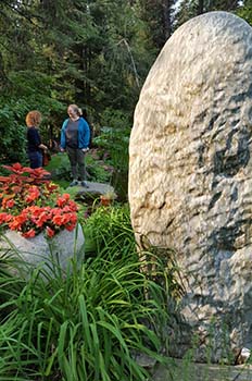 On Friday, Charlie's garden. This is a garden quite close to us on the lake shore, but which proved devilishly elusive and took us a good half hour to find. When we did finally find it, the gardener explained that there used to be a sign but someone recently stole it. The garden was started in its present form in the 1950ies by a prominent landscape designer, Charlie Davidson, and has been kept up by his heirs. It is still a private garden but is open to the public (if you're persistent enough to find it.) The flowers and bushes are displayed in a lovely vaguely Asian setting, with ponds, bridges and statuary.