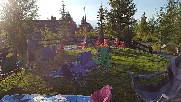 However, rumors were flying that millions of eclipsers would converge on the path of the total eclipse and cause the biggest traffic jams in history. Our fears were compounded when Antonia spoke to a friend of hers in Portland Oregon who was planning to drive up over the weekend. He said he had been unable to go because Portland was out of gas. (OMG!!!) We also spoke to a forest ranger in Cascade (where we went to view the eclipse). The total eclipse was to occur around 11:30 in Cascade; he said that all the people staying in McCall he had spoken to told him they were planning on leaving McCall at 5 a.m. to come to Cascade so he recommended that we leave earlier than that in order to beat them here. So we had visions of total gridlock occurring by dawn, with people honking at each other and sitting on their cars in the middle of the road to view the big event.