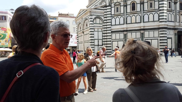 During our time with Mary and Craig, we all drove over to Florence. Cars are not permitted in the center of town, where our hotel was, except for special purposes, such as dropping off our bags at the hotel. We had to let the city know our licence plate in advance, so the police would know to let us pass; once we had dropped off our bags, a driver from the city hopped into our rental car and drove it we know not where. At the end of our stay, the city was informed that we were leaving and our car magically appeared once more at our hotel.