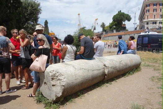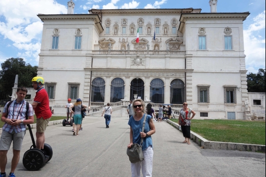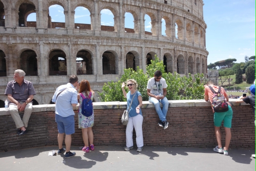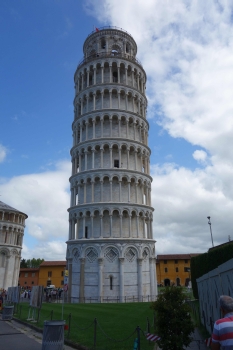 On June 15, we said goodbye to Mary and Craig and thanked them for being such good friends and fine hosts. We drove back down the winding skinny road to Seravezza, to Versilia and back to the Pisa airport to drop off the rental car. We then took a taxi, first to the famous tower, where we snapped some mandatory photos, and then to the train station. There was a fast train to Rome, but we would have had to change trains in Florence and it would have run about 100 Euros each, so we decided to take a local that took us all the way to Rome, took an extra hour but only cost about 25 Euros each. It was clean and pleasant and we had the pleasure of watching the scenery rather than a 200 kph blurr, although as we came into Rome, we started seeing American-style gang chops from the 1970ies - some even plastered on the outside of a train.