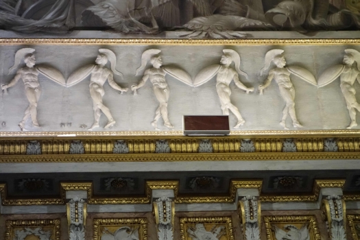Before we entered, we got a juicy story from our guide, relating to the huge painting of Judgment Day by Michelangelo that covers one of the walls. There was some controversy over the fact that many of the figures were unclothed and quite a few of them full frontal. Clerical objections were made on the grounds of indecency, although these objections came to nothing for many years. After Michelangelo's death, however, the pope agreed that something should be done about it if it could be done tastefully. Therefore he commissioned another artist to return to the worst offenders and ... add underpants to obscure the genitalia! The underpants persisted until the recent restoration, which then raised the question of whether the underpants should remain or should be removed to restore Michelangelo's original version. Although it was planned to restore Michelangelo's original version, it was found that in some cases the original paint underneath had been scraped off, so some of the underpants have survived the restoration.