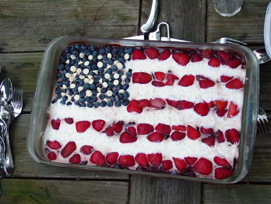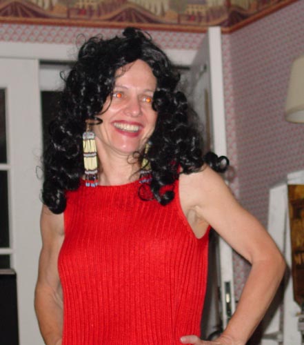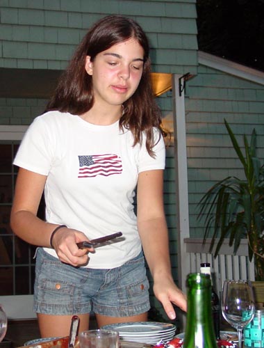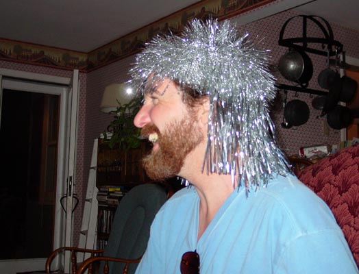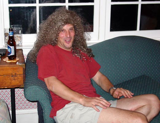 Our friends Jorge (without family, who had abandoned him for Portugal) and the Simmons helped us celebrate our nation's birthday. The weather was warm and dry and a good time was had by all. As the evening progressed, in fact, a better and better time was had by all (grownups, at least), to the point that we all strutted around in silly wigs and quite forgot to go watch the fireworks.
