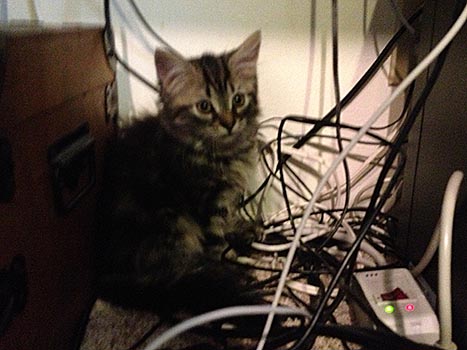 After Volt's death last year, Tillie has been more affectionate, even to non-family members. However, she seems lonely without feline companionship, so we decided to get her some company in the form of a couple of kittens. They are Siberian, long-haired and ridiculously cute. Here are some of our pics so far.