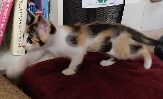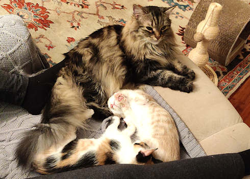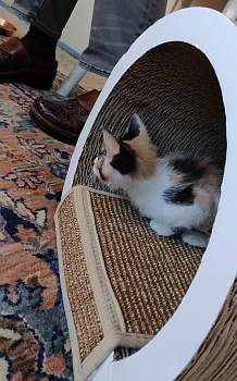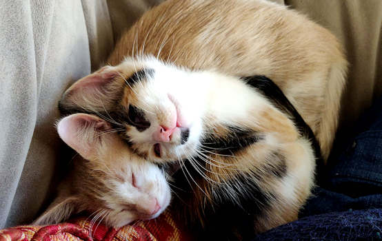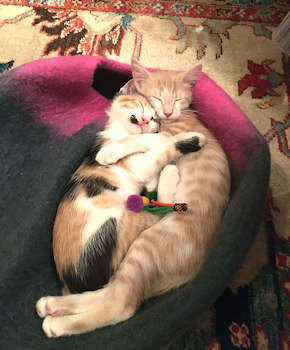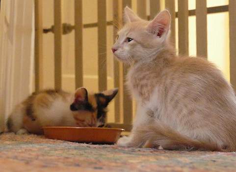Here are pictures of the new additions to the family. They are litter mates - the light orange one is Huck and the calico is Idgie. Their entire family, consisting of a somewhat feral mother cat and four kittens, was fostered by a nearby family. They (the kittens, not the foster family) were spayed/neutered on Monday and we took possession on Tuesday. We are still working on introducing them to Boris and Gus.