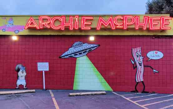 The first thing we discovered was that the apartment was only a block away from Archie McPhee. I don't believe that we had actually gone to Archie McPhee before, but Toni had gotten hold of their catalog years ago and fallen in love with it, demanding that we purchase all of her Christmas present from then on from Archie McPhee. They sell the weird and the silly, from plastic vomit and rubber chickens to inflatable turkeys. Of course, we went to the store and spent an hour or so admiring and/or purchasing much of their stock. Here are some pictures from the outside and inside of their store: