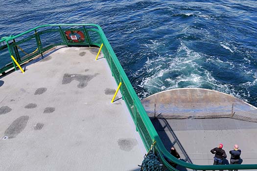 | Ferry getting started | Louise on the ferry | Peter | Peter with Joe Jack and Peggy |