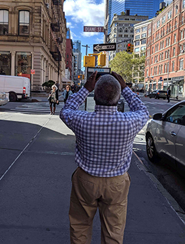 The Davises then took us all out to the nearby Odeon restaurant on West Broadway for brunch. On the way, we passed Duane Street, which prompted another photo from Duane.