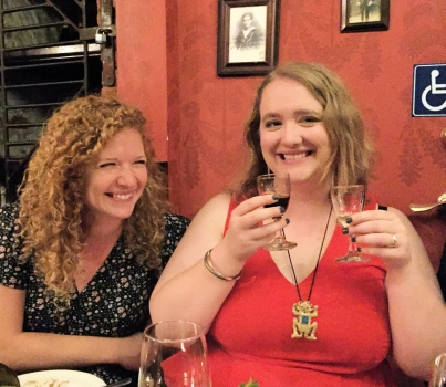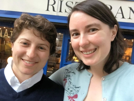 | In the subway, on the way to dinner at Pisticci | Anna and Katie outside Pisticci | |