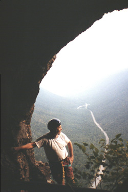 | Me at the opening to Crawford Cave | At the top of the cliff |