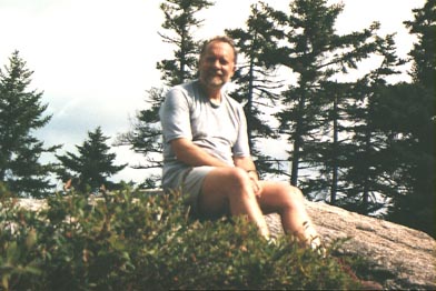 Wednesday looks better. I call Kurt Winkler and set up a climb for tomorrow and then decide on a small hike for today. I don’t want to overdo it – I have a couple of sore heels and don’t want to aggravate them. So I pick Hedgehog Mountain, over near Passaconaway. I get out there by 10 and am hiking by 10:30. It is still pretty humid, and I am sweating profusely. The trail starts at the Brook trail which goes up Passaconaway, and then branches off it to the left. The Hedgehog trail is actually a circuit, which I follow counterclockwise. The trail is soft underfoot and not too steep and by noon I am on the summit, admiring the great bulk of Passaconaway and other nearby mountains. There is no sign of the drought here – little streams seem to be everywhere and, contrary to the laws of physics, there is a little pond on the top of the mountain.After lunch, I start down, as the sky clouds up and starts to look a little threatening. The second leg of the loop is somewhat longer than the first, but it goes past the East ledges, which are magnificent. It would be a great hike for the girls, I think, since it is not too long or difficult but has some real payoff.