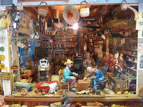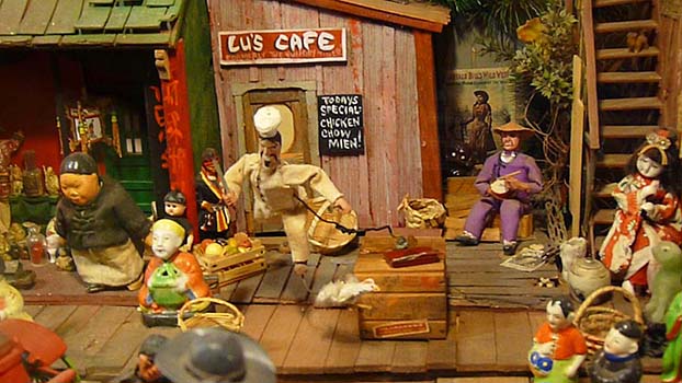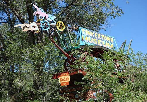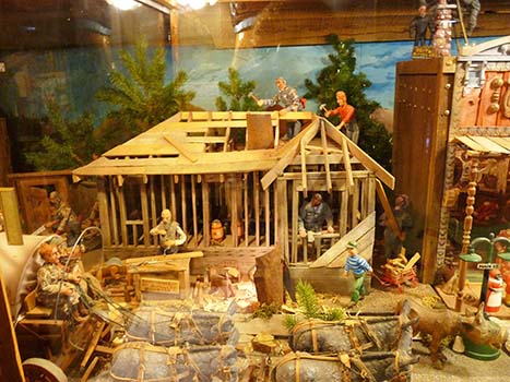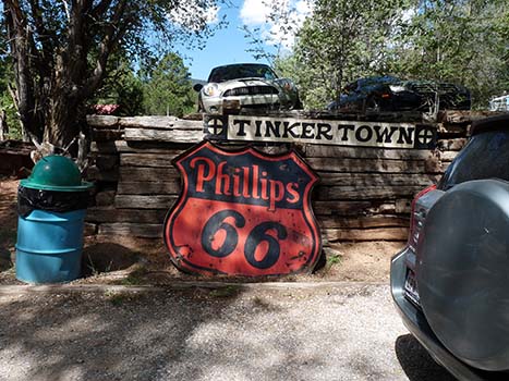 On Friday, we drove down the Turquoise Scenic Byway to Albuquerque to drop Toni off at the airport so she could take a flight to Houston to say goodbye to her frields. The Turquoise Trail is definitely oversold. Our first stop was at Cerillos, a depressing place with no attraction at all. We went into what may have been the only tourist store in town, but the saleperson didn't feel like making any sales and so he went into the back until we left. Then Madrid - delightful, tourist-friendly, where we had lunch and chatted with various folks. Then Tinker-town - bizzarre, interesting, although not particularly friendly. It was a labor of love by its creators who had carved hundreds of little figures and placed them in strange situations. Then Albuquerque itself - we didn't see the tourist spots, so it seemed pretty charmless. But lunch at a good cafe in Nob Hill and then to airport.