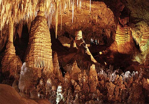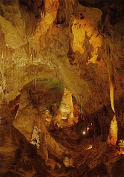 My claustrophobia explained to me that I was about to be buried under 700 ft of solid rock where I would certainly be trapped for the brief and agonizing remainder of my life. However, I decided to ignore it. Indeed, the enormous scale of the caverns made it hard to feel enclosed and I ended up enjoying the whole thing immensely. We walked down to the Big Room, which took about an hour of steady descent, but the path was well paved and the sights extraordinary. Once down there, we spent another hour wandering around, eating a sandwich, expressing wonderment and snapping photos before taking the elevator back up to the surface. We also purchased some postcards that were photographed by professionals with fancy lighting, so we have included those below. We didn't actually wait for the bats, which come out at twilight - we decided we're batty enough as it is.