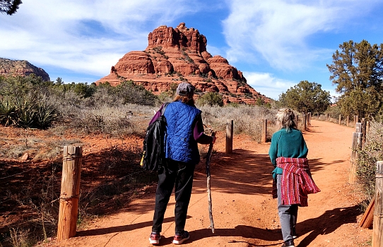 The day after we arrived, Joanne took us to Sedona, which is about two hours away. The drive took us across desert, into mountains and then to the red-rock area around Sedona, for which it is famous. Joanne had picked an easy hike along a pretty level path which goes past Castle Rock towards Bell Rock. These are two fine-looking rocks and even I was able to walk the trail without much difficulty.