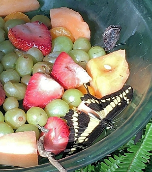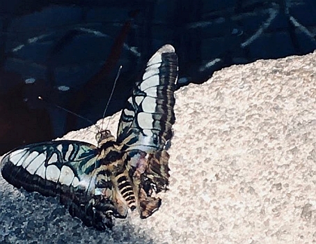 Scottsdale also has a Butterfly Wonderland, which we visited. I was afraid that it would be cases of dead butterflies, with latin names and scientific details of their mating habits. Instead, we first were instructed to take a pair of 3-D glasses and sit in a small theater where they showed us a video about the life cycle of the monarch butterfly, starting with the Texas hill country, flying north to Toronto, then south to Mexico before returning to Texas. The video was very well done, with macro shots of eggs being laid, caterpillars munching, chrysalises being formed, butterflies emerging, wings drying. Then there were a lot of flying footage that I couldn't believe was real, so it was probably supplemented by a little CGI. But it was extremely realistic and we were all flapping our programs to keep them from flying into our faces.