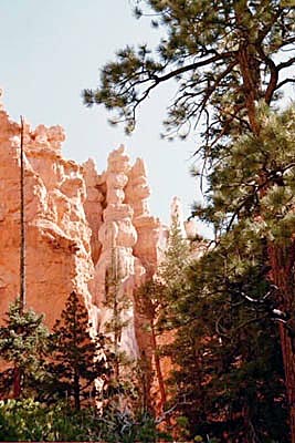 Friday, August 17: We have breakfast and then the girls decide they must go swimming again, so we head down to the hotel pool. ("But didn’t you spend the whole day yesterday in Lake Powell??") Then off to Bryce Canyon, where we are staying at Ruby’s Inn. We register, and then the girls decide that the first order of business should be another swim. ("What!!! Again???") Ruby’s is like Wall Drug, which started as a simple drug store in South Dakota and is now a mega-enterprise covering an entire block and advertised for hundreds of miles in all directions. Ruby’s is a hotel, general store, gas station, gift shop, rock shop, provider of western art, horse rides and helicopter tours, etc, etc, and is located just a mile from the Park.