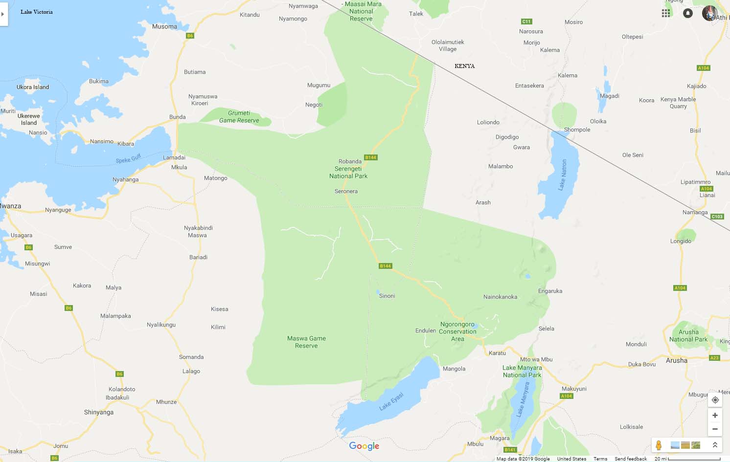 Here is a map to show where we went. Arusha is bottom right. Mt Kilimanjaro is further east, just off the map. Our safari lasted for four days, three nights, and went west to Lake Manyara and then northwest into the Serengeti National Park; then back again.