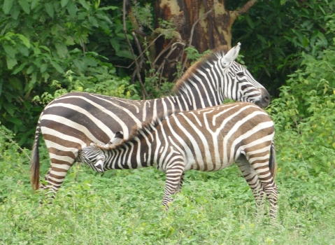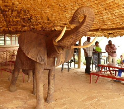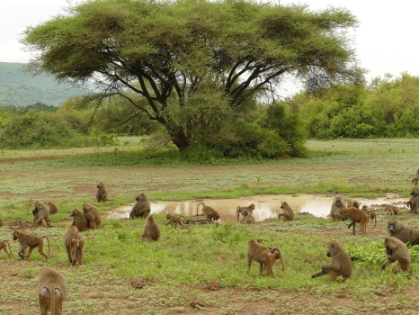 Our first destination, Lake Manyara, was only a couple of hours from Arusha. I think its proximity to Arusha lowered my expectations a bit, but in fact it delivered magnificently. On the way there, we stopped at the African Galleria, where we had a bite to eat and looked at their extensive (and expensive) selection of African art. Once in the park, we got to appreciate the virtuosity of Shefiq, our driver/guide. He directed the Truck skillfully down the muddy and rutted road, while at the same time scanning right and left for interesting fauna. His ability to spot and identify animals out of the corner of his eye was nothing short of phenomenal - Louise assured him that this was his superpower, if he ever considered joining the Avengers. Not only did he point out large beasts (elephants, zebras, giraffes) to us, but also lesser ones, such as monkeys, lizards and birds. And for each beast, he had a ton of interesting stories about their lives. If there were an Olympic event in wild animal spotting, my money is on Shefiq for the gold.