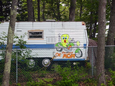 As noted above, we stayed in Weirs Beach, which is the ‘fun’ town. The commercial center is definitely a step down in the social ladder from Meredith and Wolfeboro. There are arcades, shooting galleries, taffy shops, very cheap T-shirt shops (‘Get 3 for $10!’) and bar/restaurants heavy with the smell of tobacco smoke and sporting signs out front saying ‘Bikers welcome’. What is going on here? I thought that bikers were manifestations of the devil: cruising through town, making incredible amounts of noise, careless about the rights of others and interested mostly in drinking and fighting, anathema to all good tourists everywhere. Either the local bikers have metamorphosed into good citizens, capable of mixing harmoniously with middle-class tourists, or they have carved out their own enclave in Weirs Beach, much like 19th century Tombstone, Arizona, where there is no law but Darwin’s and where no God-fearing citizen would dare to tread. If the latter explanation is correct, we have made a dreadful mistake and need to stop off at the local gun shop to arm ourselves.