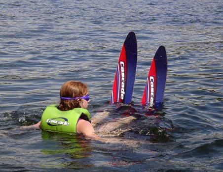 Once we had our boat, we could do a variety of things with it. One obvious one was simply to use it as a relaxing means of transportation. On one of first trips, we exited Paugus Bay into the main lake and went down Meredith Bay into Meredith. Meredith has a municipal dock where you can tie up and walk around the town. We felt immensely cool stepping off our boat, adjusting our shades and heading for Ben and Jerry’s. We also hung out on the boat – motored out to a pleasant spot where we put down the anchor and swam or played aquatic Frisbee, an invention of the girls so that they would not have to part with the Frisbee even in the water.
